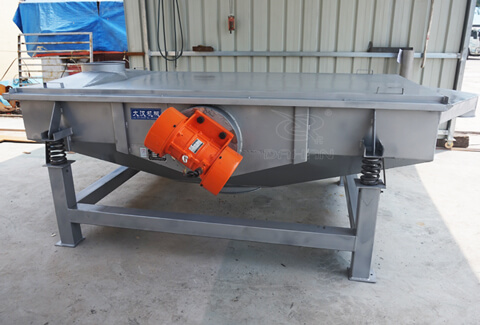 產品簡介:本品篩面尺寸為1000mm(寬)x2000mm(長)一層兩個出料口不銹鋼材質直線振動篩。上出料口為簸箕狀敞開式。底座為普碳鋼材質,用在中藥材的篩分。