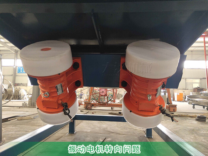 直線篩時(shí)使兩臺(tái)臥式振動(dòng)電機(jī)作為振動(dòng)篩,電機(jī)的轉(zhuǎn)向和分為正轉(zhuǎn)和反轉(zhuǎn)兩種,正常情況下兩臺(tái)電機(jī)的轉(zhuǎn)向是相反方向的,但如果用戶在接電時(shí)正負(fù)極接錯(cuò)就會(huì)引起電機(jī)同向旋轉(zhuǎn)就會(huì)出現(xiàn)篩面物料不走料的問(wèn)題;