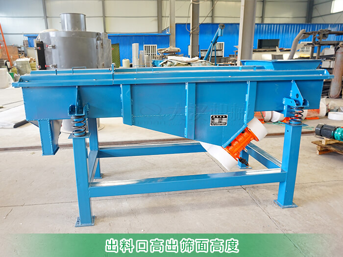 在設(shè)計(jì)直線篩時(shí)如果出料口高于篩面在生產(chǎn)過(guò)程中就會(huì)出現(xiàn)物料停滯在篩面不下料的問(wèn)題。