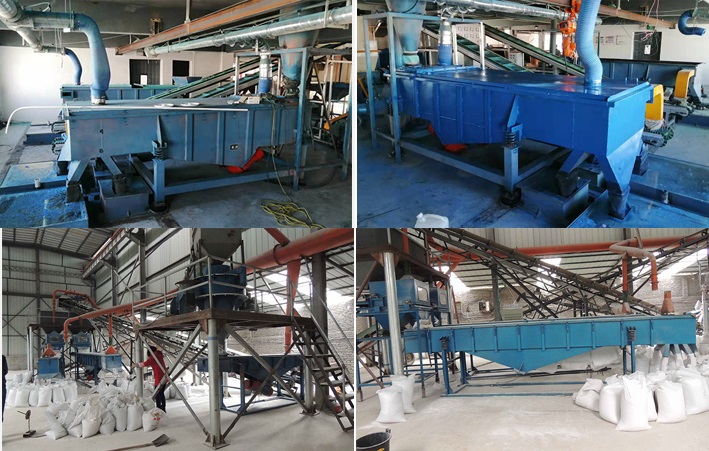 塑料顆粒通過輸送帶進(jìn)入多層直線篩設(shè)備,由于電機(jī)激振力和自身重力的雙重作用,塑料顆粒沿直線篩面直線跳躍,上層塑料顆粒在上排料口被篩出,而小于篩網(wǎng)目數(shù)的塑料顆粒進(jìn)入下部篩網(wǎng),仍沿同一物料運(yùn)動軌跡。經(jīng)過三層篩網(wǎng)后,塑料顆粒分為大于2.5mm塑料顆粒、2.5mm-1.4mm塑料顆粒、1.4mm-80目塑料顆粒、小于80目塑料顆粒等四種規(guī)格的材料,還可根據(jù)要求選擇6層不通目數(shù)的篩網(wǎng),以實(shí)現(xiàn)要求的分級效果。