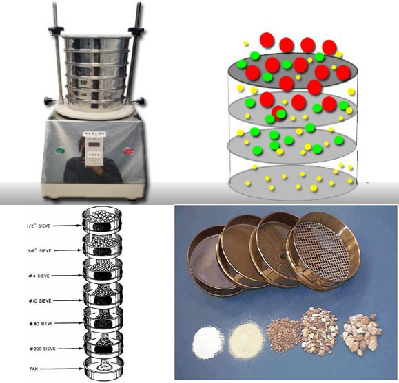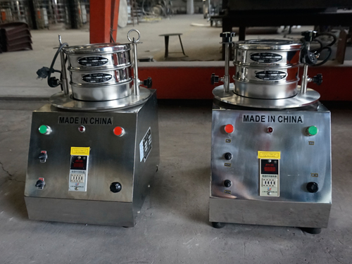 電磁試驗(yàn)篩由底座、電磁發(fā)生器、篩盤及標(biāo)準(zhǔn)篩組成。采用電磁作為驅(qū)動(dòng)力,使產(chǎn)品均一分布于整個(gè)篩網(wǎng),并做三維振蕩(具有上下振動(dòng)、前后往復(fù)運(yùn)動(dòng)、左右擺動(dòng)三種振動(dòng)方式),這種特殊的振蕩方式有效地防止近篩顆粒堵塞篩孔,使得篩下顆粒得以有效通過,根據(jù)粒度分級的需要用戶可以選用不同目數(shù)的標(biāo)準(zhǔn)篩,使小于篩網(wǎng)??的物料顆粒篩入下層篩框內(nèi),以達(dá)到分離、分級、確定粒徑的目的。