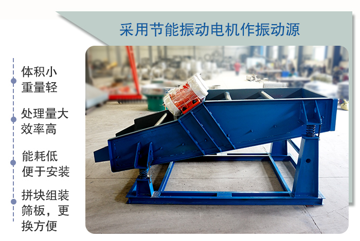 該產(chǎn)品 具有體積小、重量輕,能耗低、便于安裝及工藝布置等特點(diǎn),采用振動電機(jī)作振動源,橡膠彈簧支撐并隔振,處理量大,篩分效率高,篩網(wǎng)有較大的安裝傾角,拼塊組裝篩板,更換方便,使用壽命長。