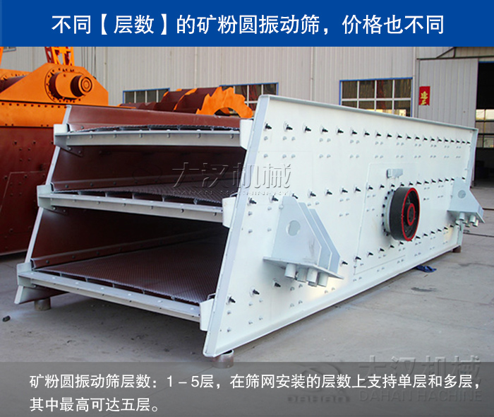 礦粉圓振動篩層數:碳鋼、不銹鋼,不同等級的篩機材質滿足不同行業的應用。